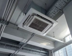 天井への設置が困難な状況でも、壁掛型で最適な空調環境を実現。
